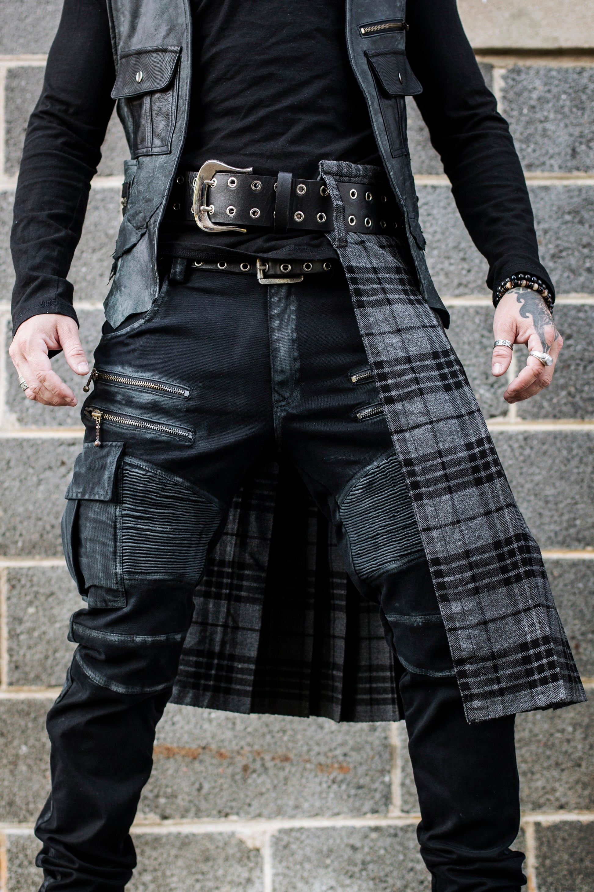 Bringing the traditional look to the modern era. This piece boasts pleats and patterns you'd see on a full kilt, while being versatile enough to wear with a ton of different styles and vibes of outfit. Use it to accent or use it to make a statement. We like to wear it on the hip, but can also easily transform an outfit by wearing it in the back.