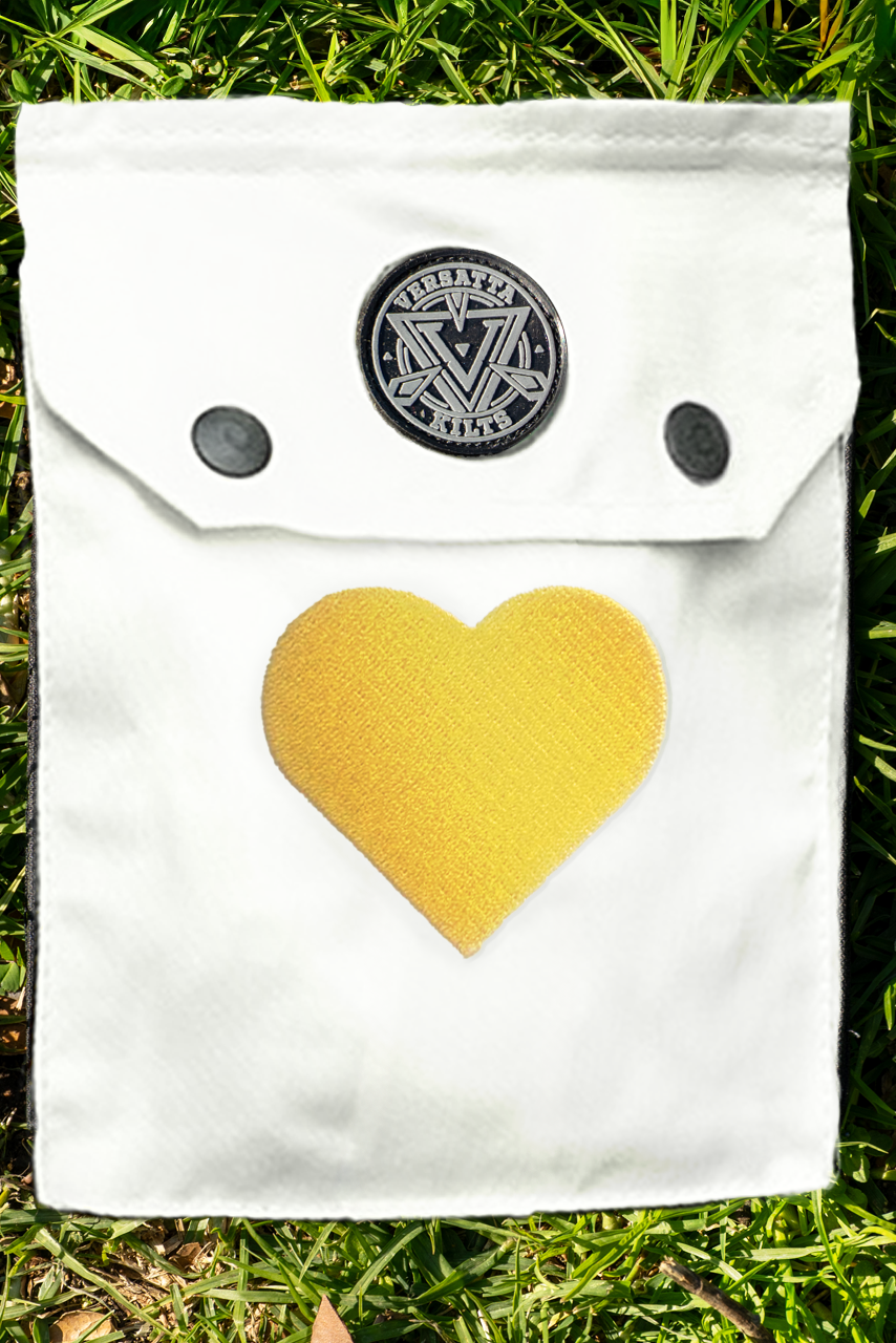 Based on the flag designed and chosen by the polyamproud group a few years ago, we are happy to announce the creation of our next Pride V-Cargo: The Polyamory Pride Kilt. This kilt will feature white pockets with a gold heart and the colors of the Polyam Flag (light blue, magenta, and purple) in the pleats.