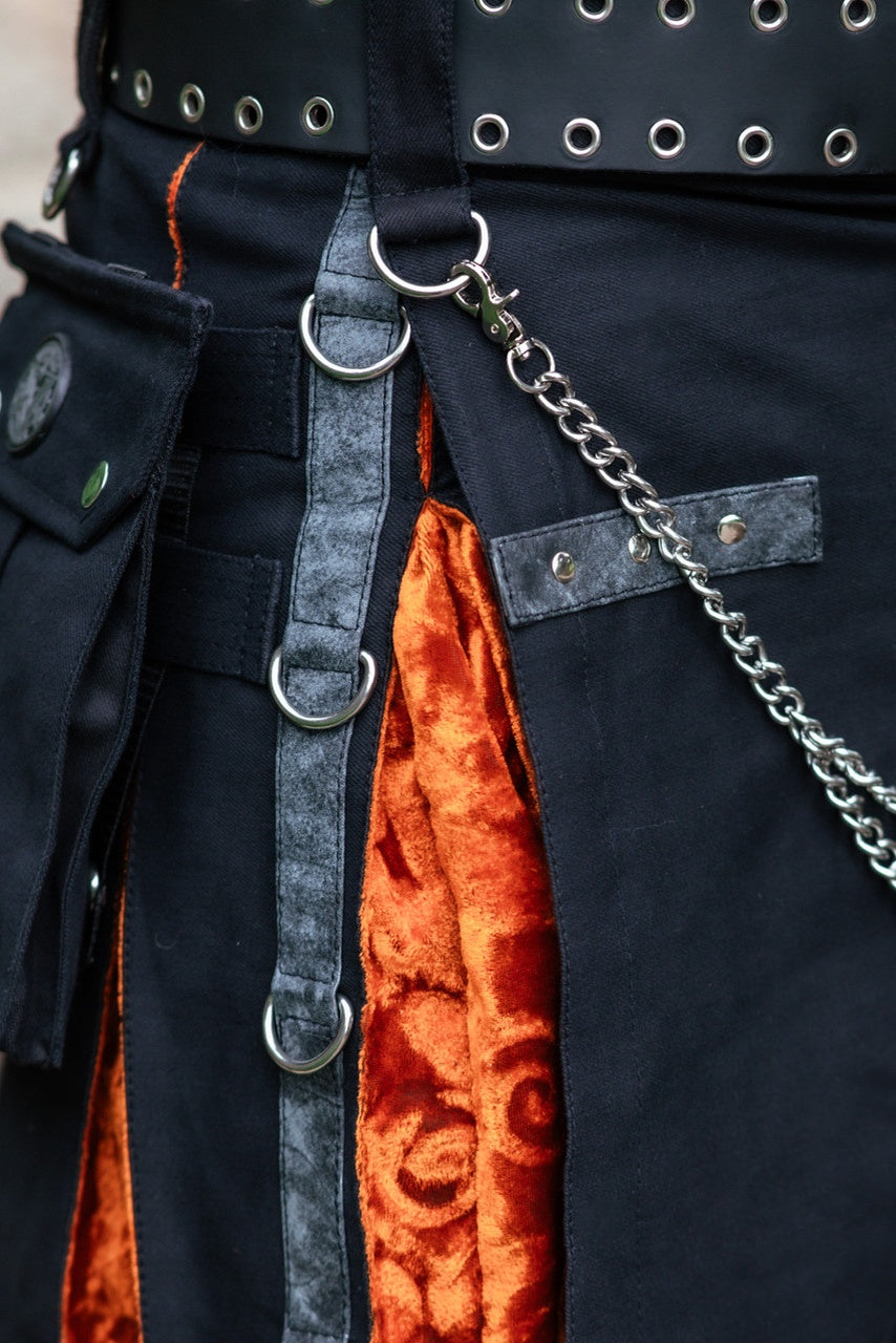 Versatta Gothic Velvet Cargo Kilt - Emberglow