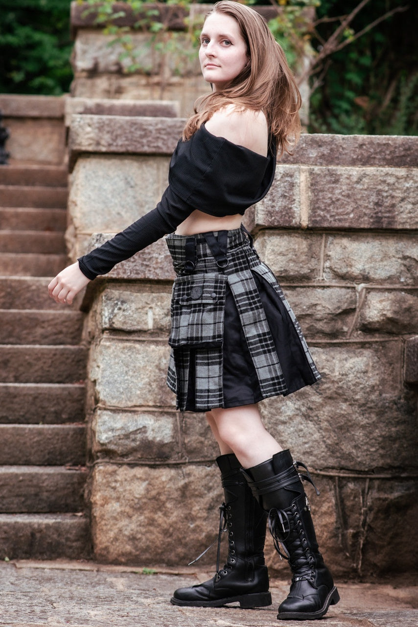 Versatta Knee-Length Inverted Tartan Hybrid Cargo Kilt - Wintergrey
